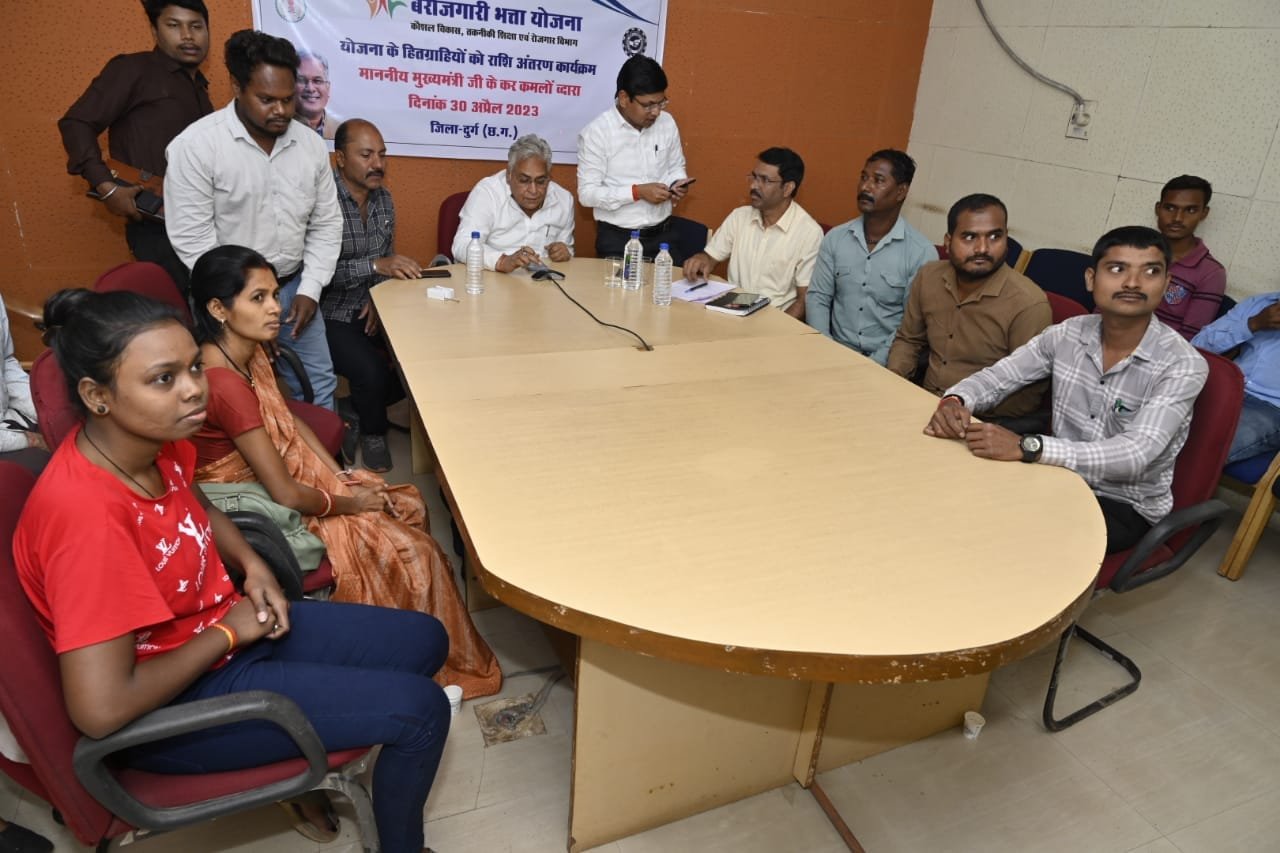 दुर्ग 30 अप्रैल 2023/आज मुख्य मंत्री निवास रायपुर में बेरोजगारी भत्ता राशि अंतरण कार्यक्रम आयोजित किया गया। इस कार्यक्रम में दुर्ग जिला से 32 हितग्राहियों ने उक्त कार्यक्रम में हिस्सा लिया। साथ ही इस कार्यक्रम में एनआईसी दुर्ग में जिले के 10 युवा हितग्राहियों में वीडियो कांफ्रेंस के माध्यम में हिस्सा लिया।