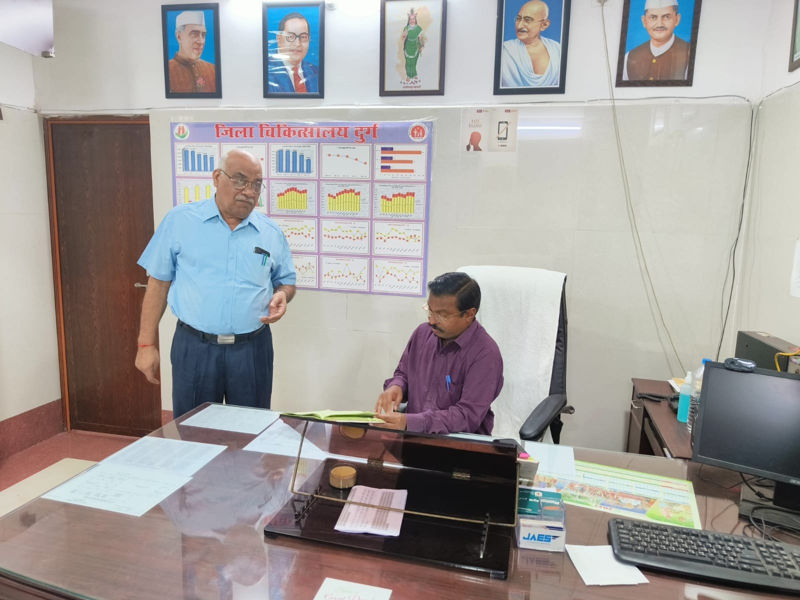 संभागायुक्त कावरे ने जिला अस्पताल दुर्ग के सिविल सर्जन वाय के शर्मा को निर्देशित किया की सभी विभागों के संबंधित चिकित्सक, अधिकारी एवं कर्मचारी कार्यालयीन निर्धारित समय एवं अपनी पालियों में उपस्थित रहे साथ ही कावरे द्वारा जिला चिकित्सालय में स्वास्थ्य संबंधी उपकरणों की उपलब्धता एवं उसके मेंटेनेंस के संबंध में चर्चा की गई एवं उसके व्यवस्थित रख रखाव के निर्देश दिए।