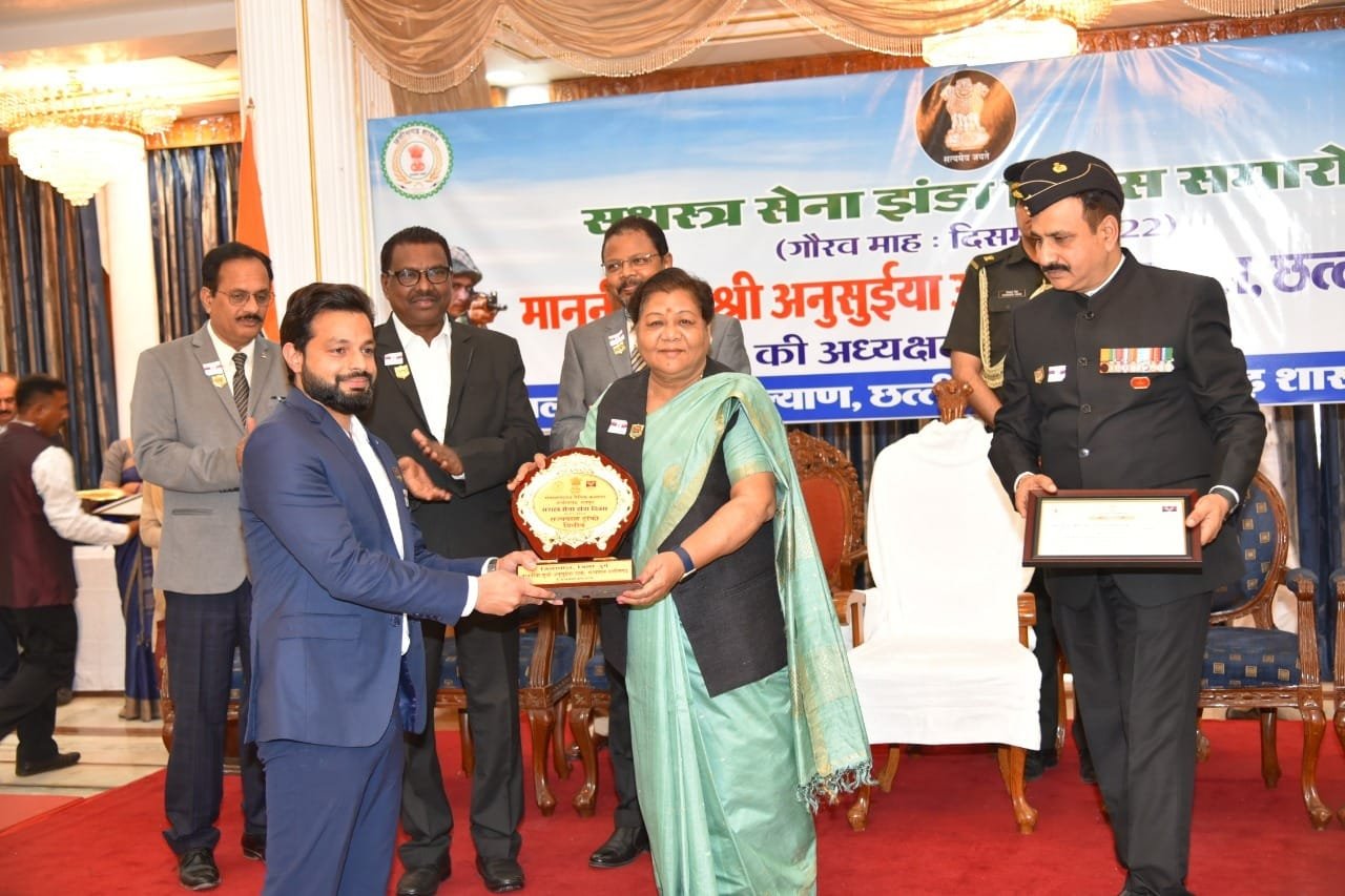सशस्त्र सेना झंडा दिवस के अवसर पर सर्वाधिक राशि योगदान के लिए दुर्ग जिला पुरस्कृत,कलेक्टर पुष्पेंद्र कुमार मीणा ने राज्यपाल सुश्री अनुसुईया उइके के हाथों ग्रहण किया सम्मान ।