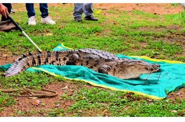 मगरमच्छ युवा और 8 फीट से ज्यादा लंबा है-