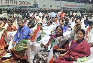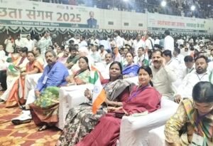 दुर्ग – छत्तीसगढ़ के बिलासपुर में आज 12 अगस्त 2025 को ‘स्वच्छता संगम-2025 का भव्य आयोजन हुआ, जिसमें पूरे प्रदेश के नगरीय निकायों की स्वच्छता टीमों और स्वच्छता दीदियों का उत्साहपूर्वक स्वागत व सम्मान किया गया। इस ऐतिहासिक अवसर पर प्रदेश के मुख्यमंत्री विष्णु देव साय ने स्वच्छता दीदियों का पद-प्रक्षालन कर उन्हें सम्मानित किया।