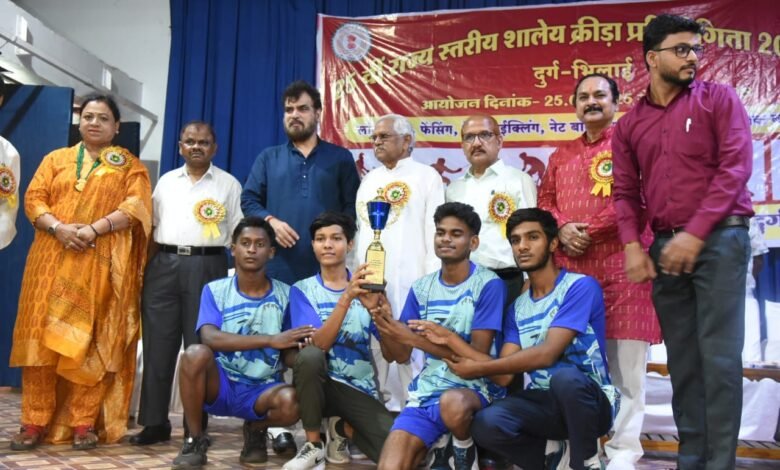 दुर्ग – खेल प्रतिभाओं को निखारने और युवाओं में खेल भावना को प्रोत्साहित करने के उद्देश्य से आयोजित 25वीं राज्य स्तरीय शालेय क्रीड़ा प्रतियोगिता-2025 का समापन आज एसएनजी विद्यालय, सेक्टर-4, भिलाई में भव्य रूप से सम्पन्न हुआ। प्रतियोगिता का आयोजन 25 सितम्बर 2025 से प्रारंभ हुआ था, जिसमें सरगुजा, बस्तर, बिलासपुर, दुर्ग और रायपुर के विभिन्न क्षेत्रों के प्रतिभागियों ने उत्साहपूर्वक भाग लिया। समापन समारोह की अध्यक्षता अहिवारा विधायक डोमनलाल कोर्सेवाड़ा ने की। 25वीं राज्य स्तरीय साल क्रीडा प्रतियोगिता में ऑल ओवर चैम्पियन का खि़ताब दुर्ग संभाग के नाम रहा।