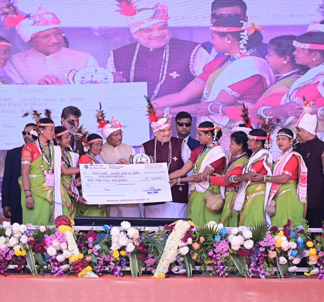 बस्तर – केंद्रीय गृहमंत्री अमित शाह ने कहा कि बस्तर भारत की संस्कृति का आभूषण है। बस्तर पण्डुम के माध्यम से यहां की संस्कृति और गौरवशाली परंपरा को छत्तीसगढ़ सरकार ने नए प्राण देने का काम किया। बस्तर पंडुम 2026 के सभी विजेताओं को केंद्रीय गृहमंत्री शाह और मुख्यमंत्री साय ने सम्मानित किया। केंद्रीय गृहमंत्री ने बताया कि इसमें प्रथम, द्वितीय और तृतीय स्थान प्राप्त करने वाले लोक कलाकारों को राजधानी दिल्ली में राष्ट्रपति भवन में आमंत्रित किया जाएगा, जहां उन्हें अपनी कला का प्रदर्शन करने और सहभोज करने का अवसर भी मिलेगा।