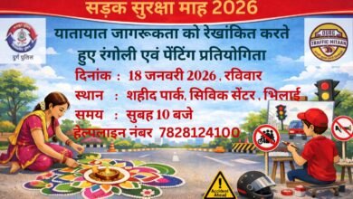 *सड़क सुरक्षा माह 2026: रंगोली एवं पेंटिंग प्रतियोगिता का आयोजन* दुर्ग, छत्तीसगढ़ – सड़क सुरक्षा माह 2026 के अंतर्गत यातायात…