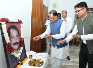 रायपुर – मुख्यमंत्री विष्णुदेव साय ने आज राजधानी रायपुर स्थित मुख्यमंत्री निवास कार्यालय में पूर्व केंद्रीय राज्यमंत्री स्वर्गीय दिलीप सिंह जूदेव की पुण्यतिथि पर उनके छायाचित्र पर पुष्पांजलि अर्पित कर श्रद्धांजलि दी। इस अवसर पर वित्त मंत्री ओ.पी. चौधरी उपस्थित थे।
