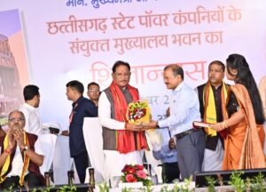रायपुर – मुख्यमंत्री विष्णु देव साय ने आज नवा रायपुर सेक्टर-24 में छत्तीसगढ़ स्टेट पावर कंपनीज के संयुक्त मुख्यालय भवन का शिलान्यास किया। रजत जयंती वर्ष और गणेशोत्सव जैसे पावन अवसर पर सम्पन्न इस समारोह में उन्होंने विधिवत पूजा-अर्चना की और भवन का थ्री-डी मॉडल अनावृत किया। मुख्यमंत्री ने कहा कि यह भवन अधिकारियों और कर्मचारियों की कार्यकुशलता को नई ऊँचाई देगा, तीनों पावर कंपनियों के बीच समन्वय को मजबूत करेगा और उपभोक्ताओं को एक ही छत के नीचे सभी सेवाएँ उपलब्ध कराएगा। उन्होंने इस अवसर पर एक पेड़ माँ के नाम अभियान के अंतर्गत मौलश्री पौधरोपण किया।