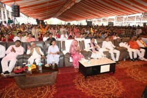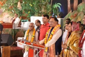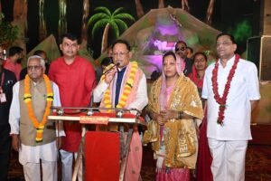 दुर्ग – मुख्यमंत्री विष्णुदेव साय पवित्र श्रावण मास के दौरान भिलाई में आयोजित सात दिवसीय शिव महापुराण कथा के समापन समारोह में आज सपत्निक सम्मिलित हुए। श्रावण मास की इस सात दिवसीय शिव महापुराण कथा श्रृंखला का आयोजन 30 जुलाई से 05 अगस्त 2025 तक बोल बम समिति द्वारा किया गया। जिसमें सिहोर मध्यप्रदेश के प्रसिद्ध कथावाचक पं. प्रदीप मिश्रा जी महाराज ने शिव महापुराण की अमृतमय कथा से हजारों श्रद्धालुओं को मंत्रमुग्ध किया। मुख्यमंत्री साय ने कथा वाचक पं. मिश्रा और व्यास पीठ से जुड़े संत जनों का छत्तीसगढ़ की 3 करोड़ जनता की ओर से स्वागत एवं अभिवादन किया। उन्होंने आयोजन समिति को तथा समस्त शिव भक्तों व श्रद्धालुओं को पवित्र श्रावण मास की बधाई एवं शुभकामनाएं दी। मुख्यमंत्री साय ने इस अवसर पर कहा कि इस्पात नगरी भिलाई में विगत सात दिनों से शिव महापुराण कथा की अविरल धारा बह रही है। उन्होंने कहा समापन दिवस पर कथा में शामिल होना मेरे लिए सौभाग्य की बात है। मुख्यमंत्री ने कहा कि भगवान महादेव की कृपा छत्तीसगढ़ वासियों पर बरसती रहे। छत्तीसगढ़ में भगवान महादेव विभिन्न जगहों पर अलग-अलग नाम से विराजमान है। जहां पर लोग श्रद्धा भाव से पूजा अर्चना करते आ रहे है।