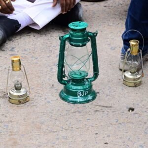 विद्युत विनियामक आयोग में लालटेन और चिमनी लेकर पहुंचे कांग्रेसी
