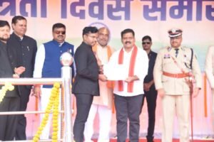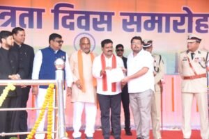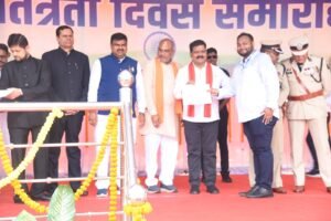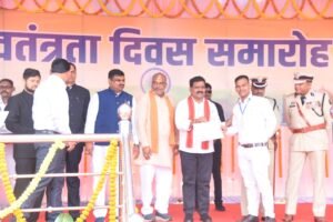 दुर्ग – स्वतंत्रता दिवस समारोह में मुख्य अतिथि प्रदेश के उप मुख्यमंत्री विजय शर्मा ने जिला प्रशासन एवं पुलिस प्रशासन के 79 अधिकारी व कर्मचारियों को उल्लेखनीय एवं विशेष कार्य के लिए प्रशस्ति पत्र प्रदान कर सम्मानित किया। जिसमें जिला प्रशासन के 64 और पुलिस प्रशासन के 15 अधिकारी/कर्मचारी शामिल है। सम्मानित अधिकारियों में राजस्व विभाग से अनुविभागीय अधिकारी हरवंश सिंह मिरी, डिप्टी कलेक्टर उत्तम ध्रुव, अतिरिक्त तहसीलदार दुर्ग क्षमा यदु, नायब तहसीलदार वासुमित्र दीवान। जिला कार्यालय दुर्ग से स्टेनोग्राफर वर्ग-3 निज सहायक कलेक्टर दुर्ग दीपक कुमार यादव, सहायक ग्रेड-02 (वरिष्ठ लिपिक शाखा) राकेश कुमार साहू, सहायक ग्रेड 03 (सहायक वित्त लिपिक प्रथम)  तेजेन्द्र साहू, नाजरात शाखा भृत्य प्रदीप कुमार क्षत्रिय। कलेक्टर भू अभिलेख शाखा दुर्ग से सहायक अधीक्षक अजय कुमार मेरावी एवं  आलोक शुक्ला, सहायक ग्र्रेड-03 खिलेन्द्र साहू एवं भृत्य ईश्वरी साहू। अनुविभागीय अधिकारी राजस्व विभाग से सहायक ग्रेड-02  एनडी पाहित, डाटा एन्ट्री ऑपरेटर शिप्रा सिंह, सहायक ग्रेड-2  वेद प्रकाश साहू। जिला योजना सांख्यिकी कार्यालय से सहा. ग्रेड-02 नमिता पन्ना। आयुष विभाग से विशेषज्ञ चिकित्सक डॉ. जया साहू शामिल है। महिला एवं बाल विकास विभाग से आंगनबाड़ी कार्यकर्ता ममता नागरिया। नगर पंचायत धमधा से कम्प्यूटर ऑपरेटर मनोज कुमार सोनी। विद्युत विभाग विद्युत वितरण केन्द्र बघेरा से उत्तम कुमार सोनी। स्वास्थ्य विभाग से चिकित्सा अधिकारी डॉ. यामिनी सिंह, सुपरवाईजर महिला सुनिता चेलक, स्टाफ नर्स जिला चिकित्सालय दुर्ग सविता सोधिया, आर.एच.ओ. तुलसी राम यादव, नवदृष्टि फाउण्डेशन नया बस स्टैण्ड दुर्ग, राज आढ़तिया वार्ड 29 अस्पताल वार्ड पचरी पारा दुर्ग, गोपाल गुप्ता शिव पारा दुर्ग, धर्मेन्द्र शाह पचरी पारा दुर्ग, दुर्गा प्रसाद सोनी शिव पारा दुर्ग, शुमाली सिंह। जिला सेनानी एवं नगर सेना दुर्ग से एसडीआरएफ भूपेन्द्र सिंह राजपूत, गोपी पाटिल, चन्द्रप्रकाश, अग्निशमन एवं आपातकालीन सेवाएं मनोज सोनवानी, भीषम कुमार साहू, दीपक यादव। नगर पालिक निगम रिसाली से राजस्व निरीक्षक रवि श्रीवास्तव। पशु चिकित्सालय दुर्ग से सहायक पशु चिकित्सा क्षेत्र अधिकारी सुरेश कुमार साहू। समाज कल्याण विभाग से डाटा एन्ट्री ऑपरेटर  गौतम कुमार साहू। नगर पालिक निगम भिलाई चरोदा से सहायक ग्रेड-02 अभिलाषा श्रीवास्तव। वनमंडल दुर्ग बीएफओ  वेद प्रकाश यादव। मछली पालन दुर्ग से मछुआ चौकीदार  चोलेश्वर प्रसाद साहू। नगर पालिका परिषद् कुम्हारी से उप अभियंता साधना अहिरवार। जिला पंचायत दुर्ग से सरपंच ईश्वर प्रसाद साहू, सचिव नीमेश भोयिर, सरपंच लुकेश्वरी साहू, सचिव बिसाहू, सर