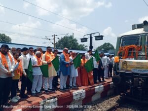 प्रस्थान से पहले स्टेशन पर उपस्थित जनप्रतिनिधियों और अधिकारियों ने सभी रामभक्तों का तिलक कर, माला पहनाकर एवं मंगलकामनाओं के साथ स्वागत किया। बैंड की मधुर धुन के बीच श्रद्धालु “जय श्रीराम” और “रामलला हम आ रहे हैं” के जयकारे लगाते हुए उत्साह से भरे दिखे।