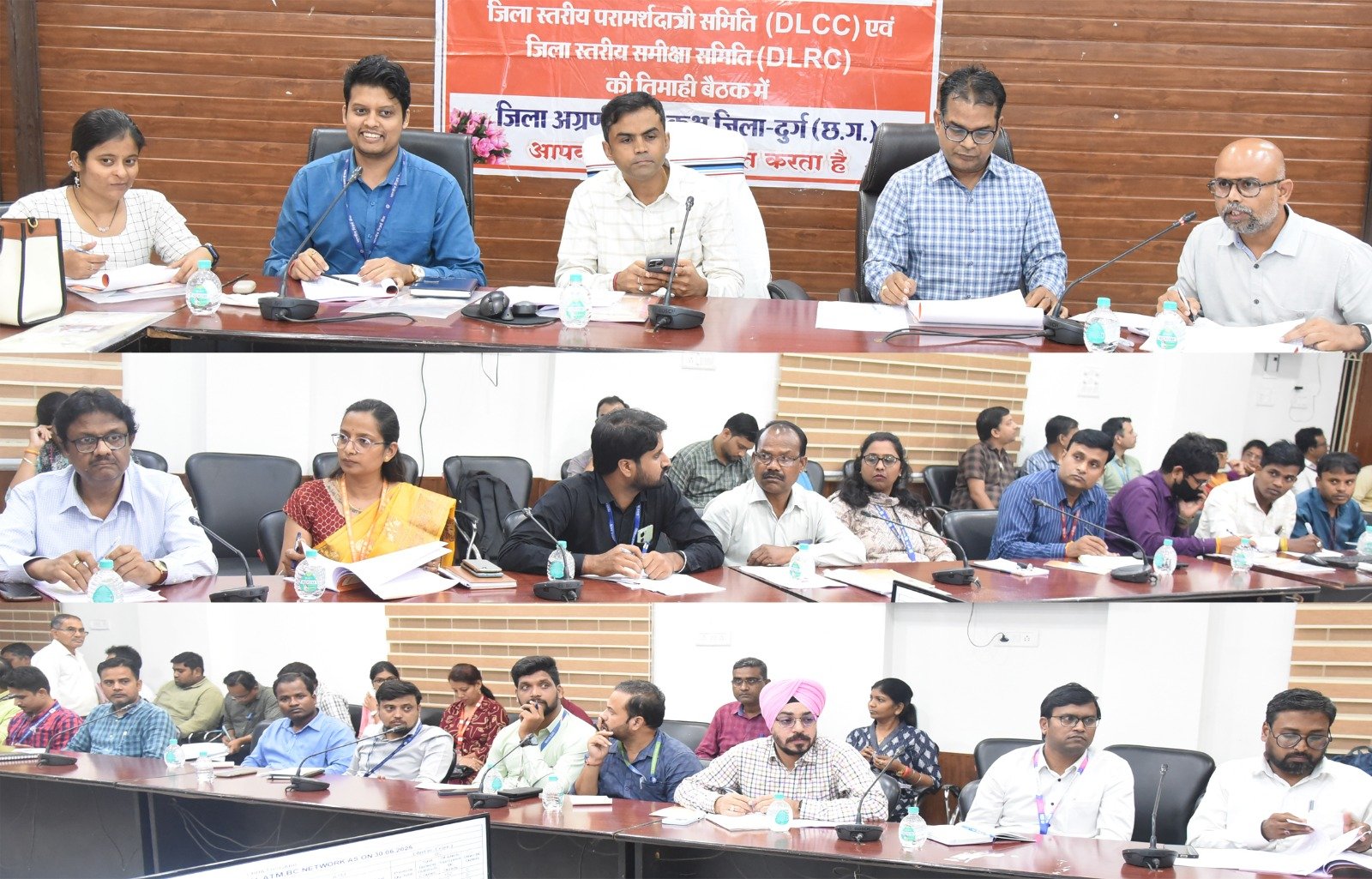 दुर्ग – कलेक्टर अभिजीत सिंह के निर्देशानुसार जिला पंचायत मुख्य कार्यपालन अधिकारी बजरंग कुमार दुबे की अध्यक्षता में जिला स्तरीय त्रैमासिक बैंकर्स समीक्षा बैठक (डीएलसीसी) विगत दिवस शाम 5.30 बजे कलेक्टर सभागार में सम्पन्न हुई। बैठक में सभी जिला स्तरीय बैंक कार्डिनेटर (DCO) एवं विभागीय अधिकारी उपस्थित रहे। बैठक में शासकीय योजनाओं के प्रभावी क्रियान्वयन तथा ग्रामीण क्षेत्रों के हितग्राहियों को बैंकिंग सुविधाओं के माध्यम से लाभ पहुँचाने पर विशेष जोर दिया गया।