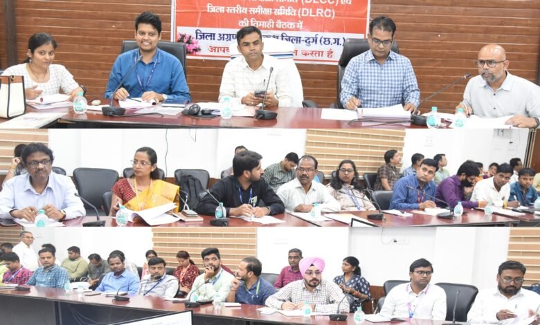 दुर्ग – कलेक्टर अभिजीत सिंह के निर्देशानुसार जिला पंचायत मुख्य कार्यपालन अधिकारी बजरंग कुमार दुबे की अध्यक्षता में जिला स्तरीय त्रैमासिक बैंकर्स समीक्षा बैठक (डीएलसीसी) विगत दिवस शाम 5.30 बजे कलेक्टर सभागार में सम्पन्न हुई। बैठक में सभी जिला स्तरीय बैंक कार्डिनेटर (DCO) एवं विभागीय अधिकारी उपस्थित रहे। बैठक में शासकीय योजनाओं के प्रभावी क्रियान्वयन तथा ग्रामीण क्षेत्रों के हितग्राहियों को बैंकिंग सुविधाओं के माध्यम से लाभ पहुँचाने पर विशेष जोर दिया गया।