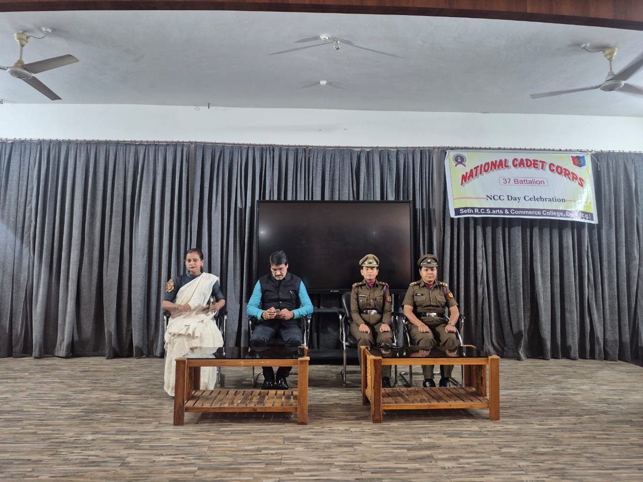 दुर्ग – सेठ आर.सी.एस. आर्ट एंड कॉमर्स कॉलेज में एन.सी.सी. दिवस का आयोजन किया गया। मुख्य अतिथि वीरेंद्र शुक्ला, शासी निकाय अध्यक्ष, दाऊ र. रु. प्रसाद विद्यालय, ने कार्यक्रम की शुरुआत माँ सरस्वती की पूजा अर्चना कर की।