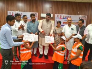 दुर्ग – महात्मा गांधी की जयंती के पावन अवसर पर नगर पालिक निगम दुर्ग द्वारा स्वच्छता ही सेवा अभियान 2025” के अंतर्गत श्रद्धेय मोतीलाल वोरा सभागार में स्वच्छता सम्मान समारोह का भव्य आयोजन किया गया।