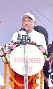 रायपुर – हमारा तिरंगा पूर्वजों के वर्षों के संघर्षों और बलिदान का जीवंत प्रतीक है। हम सभी तिरंगे की शान को हमेशा बनाए रखेंगे, अपने अमर बलिदानियों को कभी नहीं भूलेंगे और सभी मिलकर विकसित, समृद्ध और सशक्त छत्तीसगढ़ का निर्माण करेंगे। मुख्यमंत्री विष्णु देव साय आज राजधानी रायपुर के मरीन ड्राइव में आयोजित स्वतंत्रता दौड़ में शामिल हुए और कार्यक्रम को संबोधित किया। इस दौरान उन्होंने हजारों युवाओं के साथ स्वतंत्रता दौड़ लगाई और भारत माता और अमर बलिदानी रानी दुर्गावती की प्रतिमा पर माल्यार्पण कर उन्हें नमन किया।