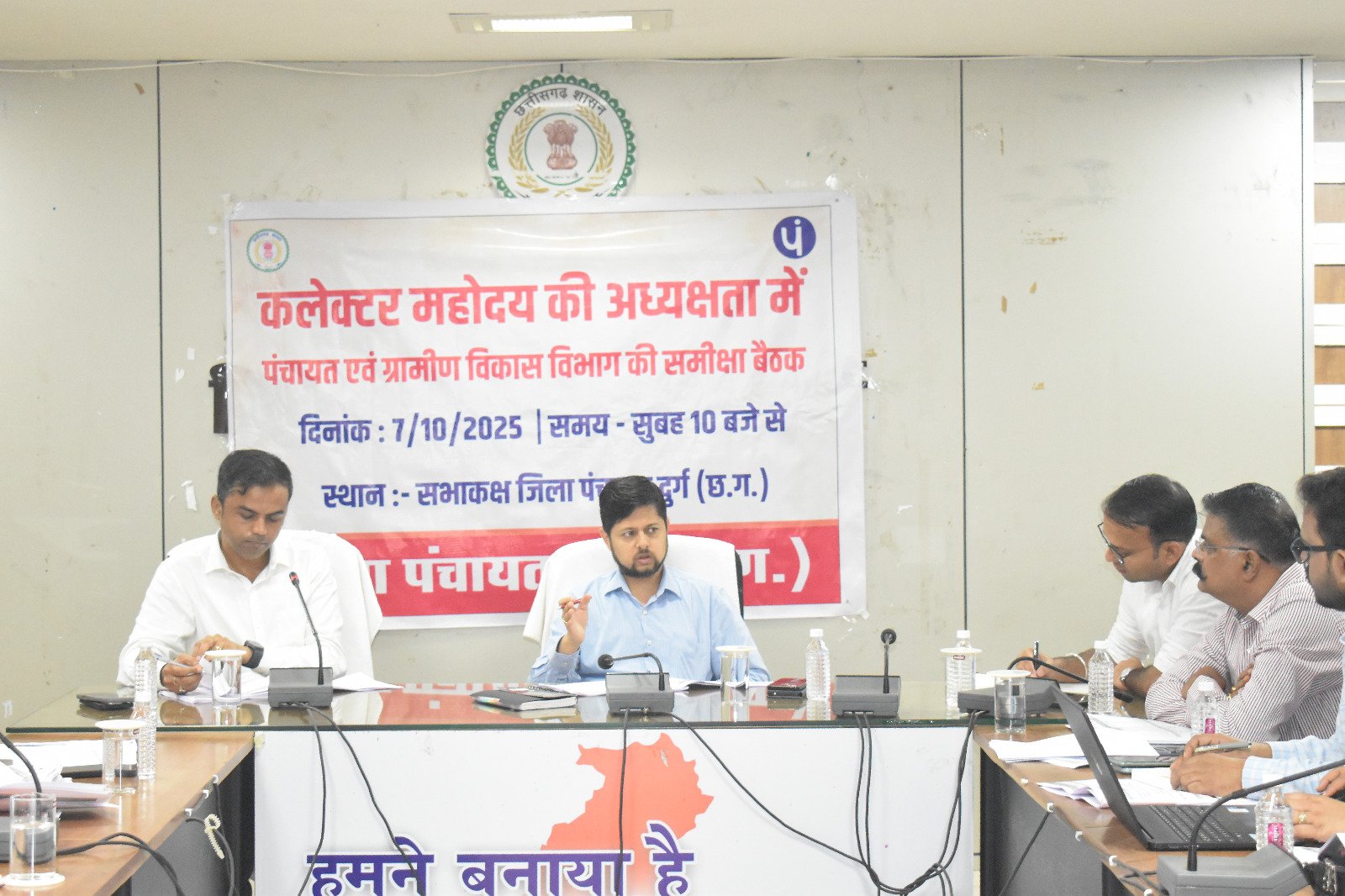 दुर्ग – कलेक्टर अभिजीत सिंह की अध्यक्षता में आज जिला पंचायत सभाकक्ष में ग्रामीण विकास विभाग की समीक्षा बैठक आयोजित की गई। इस बैठक में महात्मा गांधी राष्ट्रीय ग्रामीण रोजगार गारंटी योजना (मनरेगा), प्रधानमंत्री आवास योजना, स्वच्छ भारत मिशन, राष्ट्रीय ग्रामीण आजीविका मिशन तथा पंचायतों में संचालित निर्माण कार्यों की विस्तार से समीक्षा की गई।