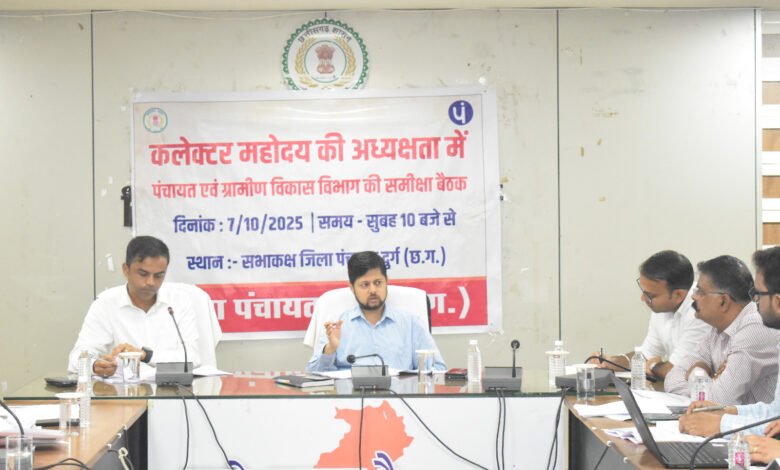 दुर्ग – कलेक्टर अभिजीत सिंह की अध्यक्षता में आज जिला पंचायत सभाकक्ष में ग्रामीण विकास विभाग की समीक्षा बैठक आयोजित की गई। इस बैठक में महात्मा गांधी राष्ट्रीय ग्रामीण रोजगार गारंटी योजना (मनरेगा), प्रधानमंत्री आवास योजना, स्वच्छ भारत मिशन, राष्ट्रीय ग्रामीण आजीविका मिशन तथा पंचायतों में संचालित निर्माण कार्यों की विस्तार से समीक्षा की गई।