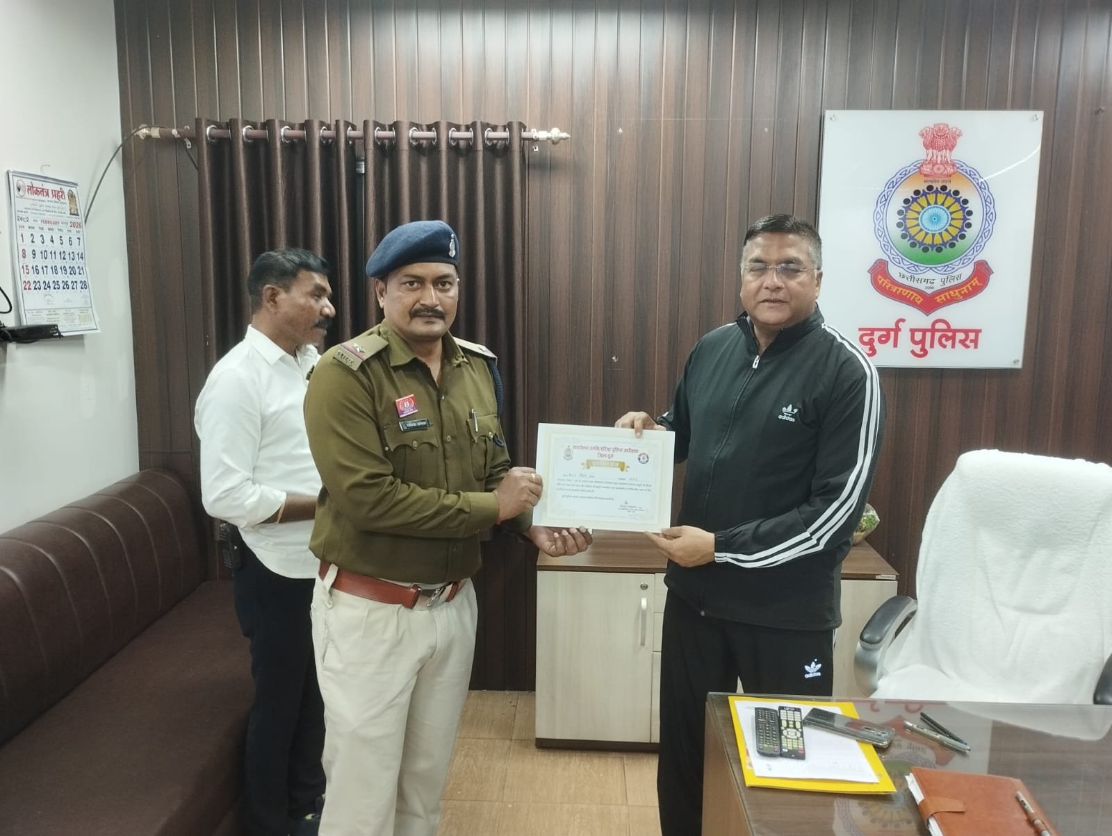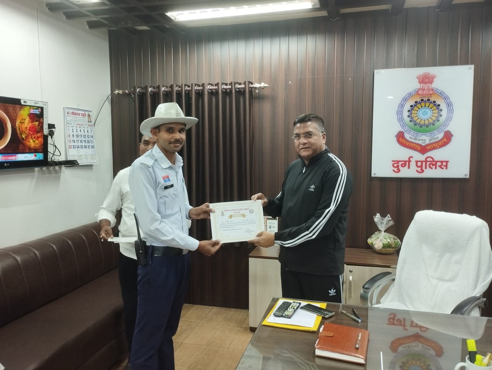 पुलिस नियंत्रण कक्ष, सेक्टर-06 भिलाई में यातायात नियमों के प्रभावी क्रियान्वयन हेतु विशेष समीक्षा एवं सम्मान समारोह आयोजित