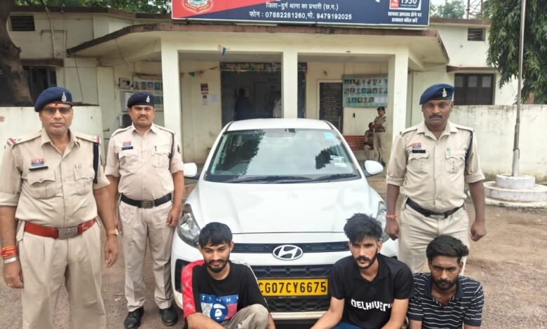 दुर्ग – दिनांक 01.10.2025 को मुखबीर से सूचना मिली कि इंजीनियरिंग पार्क के पास बद्रीनाथ धर्मकांटा के पीछे वाली गली पुरानी मिलाई के पास एक सफेद रंग के हुण्डई आई औरा कार में तीन लड़के अवैध रूप से मादक पदार्थ अफीम की बिक्री कर रहे है। थाना प्रभारी पुरानी भिलाई हमराह स्टाफ, एसीसीयू टीम तथा गवाह के मुखबीर के बताये स्थान पर पहुचे। जहां पर एक सफेद रंग के हुण्डई आई औरा कार कमांक CG07 CY 6675 पुलिस की गाड़ी को देखकर सकरे गली से भागने का प्रयास करने लगे जिसे घेराबंदी कर पकड़ा गया।