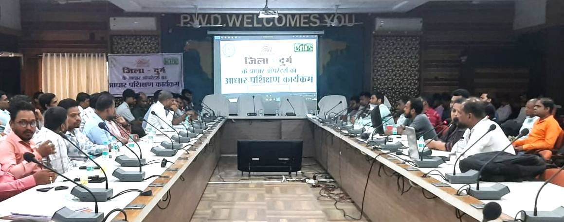 दुर्ग – कलेक्टर अभिजीत सिंह के निर्देशानुसार आज पीडब्ल्यूडी के सभागार में दुर्ग जिले के 58 आधार ऑपटरों को आधार नामांकन एवं अपडेशन हेतु आधार सॉफ़्टवेयर के नए वर्जन यूनिवर्सल क्लाइंट के संबंध में जानकारी दी गई। उक्त जानकारी भारतीय विशिष्ट पहचान प्राधिकरण क्षेत्रीय कार्यालय हैदराबाद के असिस्टेंट मैनेजर सौरभ रामटेके द्वारा दी गई। साथ ही आधार संचालकों के द्वारा पूछे गए आधार शिकायत की समस्याओं का समाधान किया गया। प्रशिक्षण में दुर्ग ईडीएम श्रुति अग्रवाल एवं दुर्ग के आधार ऑपरेटर्स उपस्थित थे।