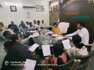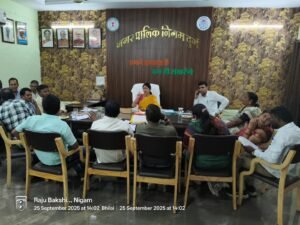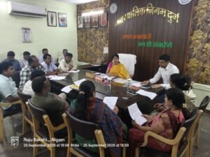 दुर्ग – नगर निगम दुर्ग की मेयर इन काउंसिल (एमआईसी) बैठक महापौर अलका बाघमार की अध्यक्षता में मेयर कक्ष में आयोजित हुई। बैठक में आयुक्त सुमित अग्रवाल, एमआईसी सदस्य, उपायुक्त व अन्य अधिकारी-कर्मचारी मौजूद रहे।